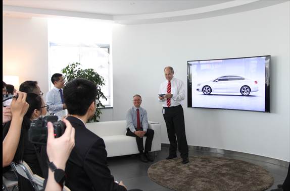 “这款三层隔音玻璃由2块半钢化的玻璃通过PVB胶在温度和压力作用下黏结一起,特殊的结构使其在吸热、降噪以及安全方面极具优势,代表了高级轿车市场的领先水准。”来自圣戈班的余军辉先生向在场媒体介绍了三层隔音玻璃的构造原理。